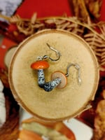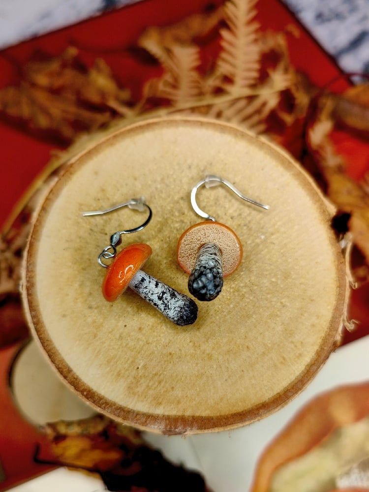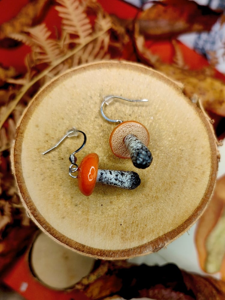 Urocze kolczyki w kształcie grzybków kolźlarzy pomarańczowozoltych, które zachwycą każdego miłośnika natury i oryginalnych dodatków. Wykonane ręcznie z dbałością o szczegóły – od intensywnego kapelusza po charakterystyczną, cętkowaną nóżkę.