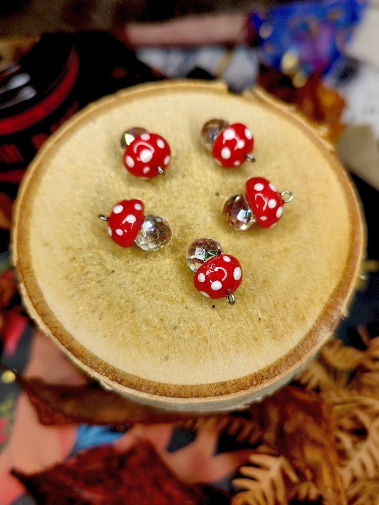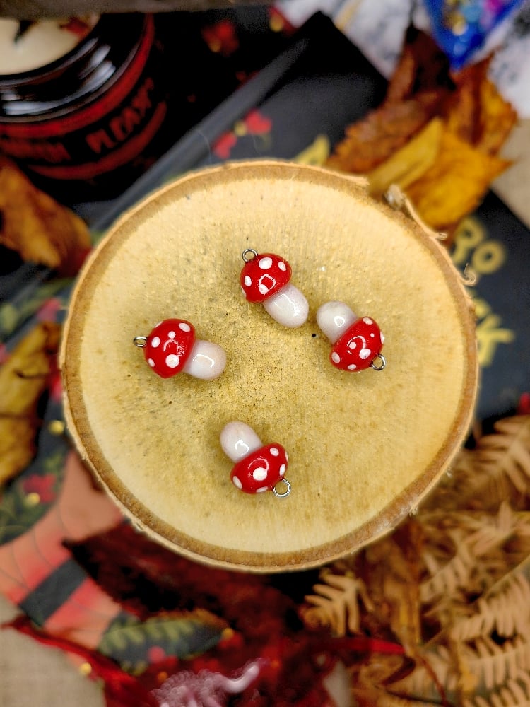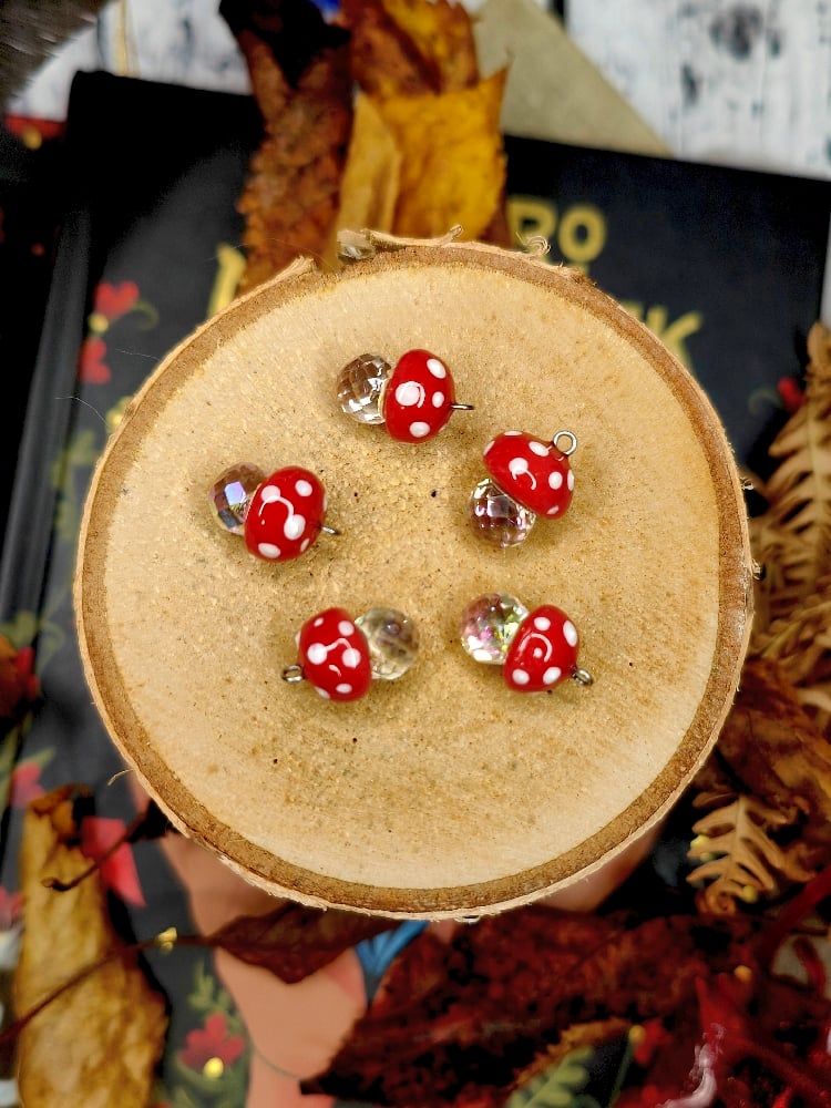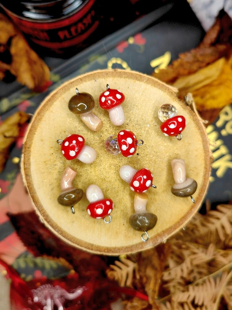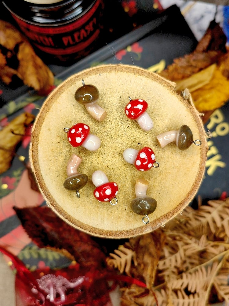 Ręcznie robione maleńkie zawieszki z grzybkami. Świetnie nadadzą się na wisiorek, kolczyki czy charmsa do ulubionej bransoletki, wybór należy do Ciebie 🍄❤️